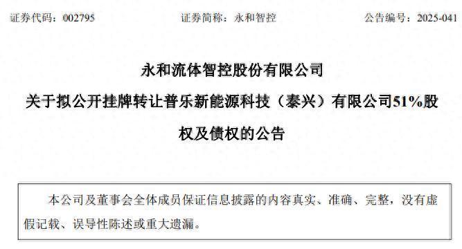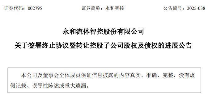 同日,永和智控公告称,2025年10月10日公司与深圳市凡荣实业有限公司(以下简称“凡荣实业”)、普乐新能源科技(泰兴)有限公司(简称“泰兴普乐”)签署《关于普乐新能源科技(泰兴)有限公司股权收购及债权转让协议之终止协议》,终止此前达成的股权及债权转让协议。